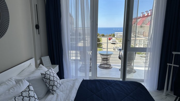 В апартаментах есть большая открытая лоджия с видом на море