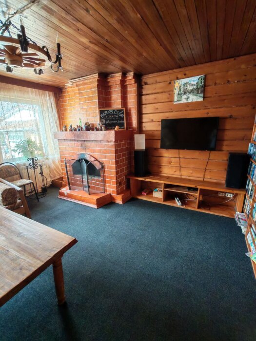 В каждом номере есть всё для комфортного проживания. Общая кухня оборудована всем необходимым для приготовления пищи. В гостиной с камином можно приятно провести вечер за чтением книги из нашей библиотеки.
