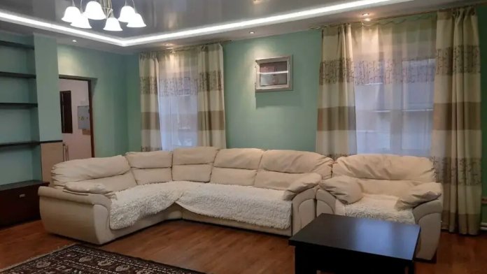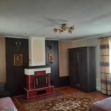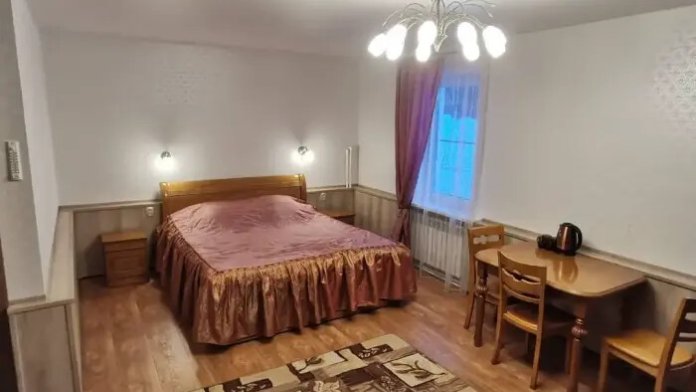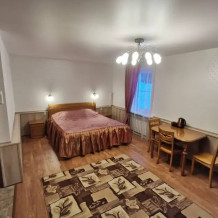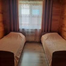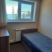 На 1 этаже трехэтажного коттеджа 2 Семейных номера, в каждом по 4 места: в одном двуспальная кровать и раскладной угловой диван; во втором двуспальная кровать и два кресла-кровати. У каждого номера свой вход. Санузел у каждого номера, в одном ванна, в другом душевая кабина. В номере: обогреватель, вентилятор, утюг, сушилка для белья, москитные сетки на окнах.