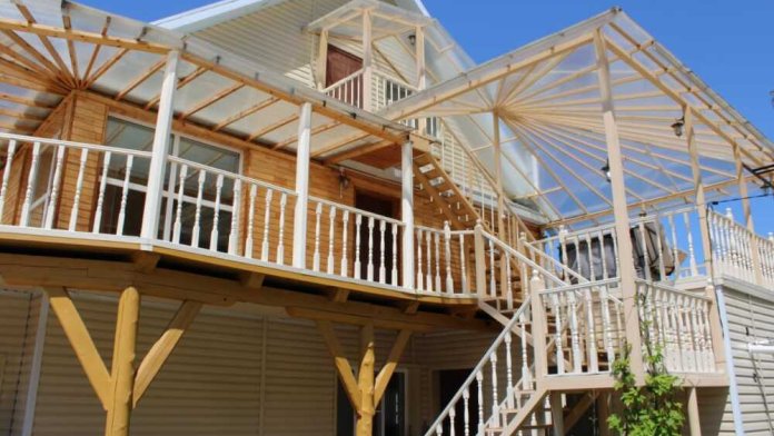 На территории расположено 2 дома. Первый дом трехэтажный с 11 номерами разного уровня от Семейных до Эконом. Второй дом с 2 номерами, у каждого из которых отдельный выход. 1 номер категории VIP - двухместный. 2 номер - двухкомнатный для 7 человек.