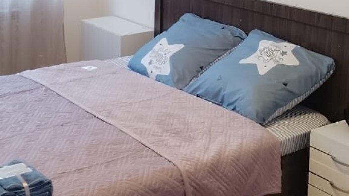Есть всё необходимое для удобного проживания: свежее постельное бельё, полотенца, средства гигиены, гладильная доска, утюг, чайник, посуда.