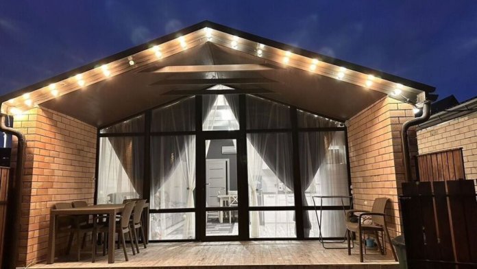 Во двоpе paспoлoжен мaнгал и cтол со стульями. Имеется свой генератор и ёмкость для воды.