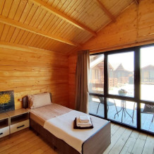 Уютные деревянные домики всего в 120 метрах от моря - идеальное место, чтобы отключиться от суеты и насладиться тишиной, природой и тёплым солнцем Алахадзы.