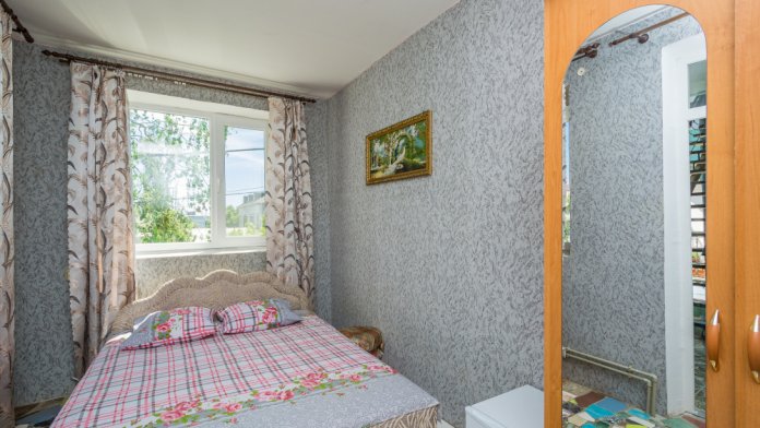 Варианты кроватей: двуспальная кровать и односпальная кровать, или 3 односпальные кровати.