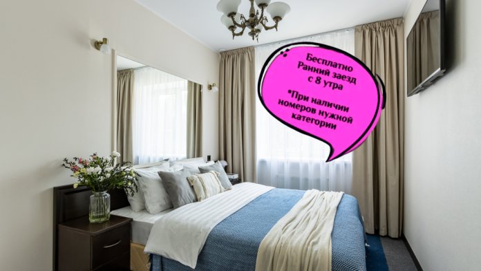 - В отеле возможен гарантированный ранний заезд, стоимость составляет 100% оплаты предыдущих суток. Услуга негарантированного раннего заезда предоставляется бесплатно с 08:00 при наличии свободных номеров.