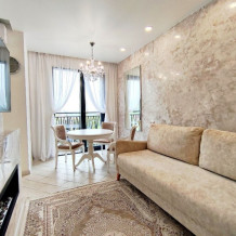 Просторная и уютная квартира с современным ремонтом, продуманной планировкой и всей необходимой мебелью. Панорамные окна наполняют пространство светом, а два уровня делают квартиру особенно комфортной для пары или семьи.