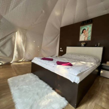 Уютные, многокомнатные номера для больших семей и маленьких. Все они оснащены телевизором, холодильником и санузлом. Дом 8-местный и 12-местный имеет оборудованную кухню.