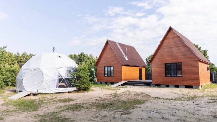 В доме: 2 двуспальные кровати размера king size и 1 односпальная кровать. Мини-кухня (холодильник, плита, чайник, необходимая посуда). Санузел (душ, раковина, туалет). Широкие окна, наполняющие пространство дневным светом, мини-камин, теплые полы, своя уличная терраса для утреннего чаепития. Домик снабжен вешалкой для одежды, гостям выдаются полотенца.