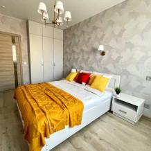 - Двуспальная кровать 160х200. Заправлена белоснежным постельным бельем.