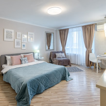 - полностью укомплектованная кухня с микроволновой печью и посудой- Wi-Fi, смарт ТВ, Kion онлайн кинотеатр.