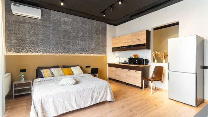 - Техника: Wi-Fi (100 Мбит/с), SMART-TV, стиральная машинка, кондиционер.