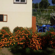 Удобное расположение, недалеко от берега черного моря (400 метров) и при этом всего в 5 минутах езды от центра курорта Новый Афон.