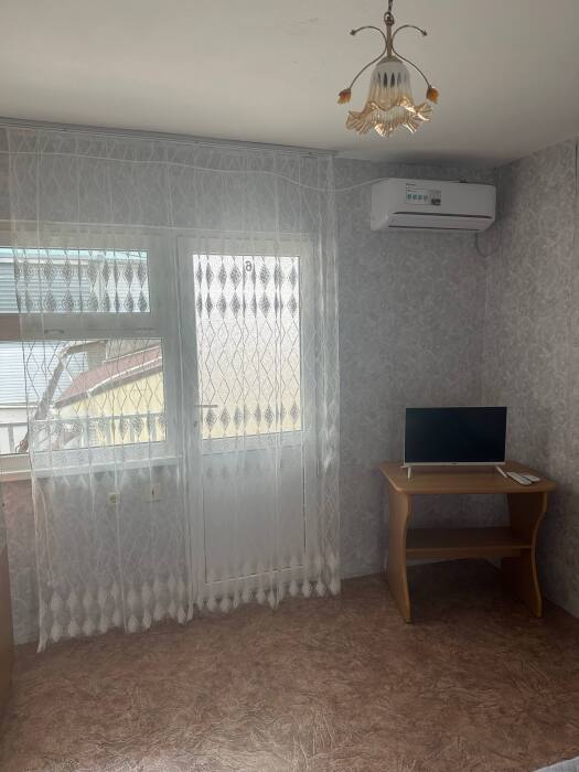 Имеется балкон, кондиционер телевизор, шкаф, вешалка, зеркало, журнальный столик, стулья.