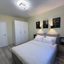 В квартире есть все необходимое: двухспальная кровать, диван, кухонный гарнитур, плита, микроволновка, чайник, стиральная машина, телевизор, шкаф, обеденная зона, гладильные принадлежности, Wi-Fi. Предоставляются туалетно-косметические принадлежности.