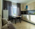 В квартире могут расположиться до 3-х гостей: двуспальная кровать 160×200 и раскладушка с матрасом 70*190.