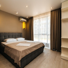 Апартаменты с видом на море. Находятся в 50 м от пляжа. Своим гостям мы предлагаем бесплатный подогреваемый взрослый и детский бассейны с анимацией, а также мангальную зону и бар. В шаговой доступности есть магазины «Пятёрочка» и «Перекрёсток». Прогулка до Детского парка с аттракционами и выставочного центра «Мир Бабочек Живых» занимает 8 минут, до набережной, аквапарка «Золотой пляж», Крокодиловой фермы, кинотеатра «Мир кино» и автовокзала - 15-20 минут.