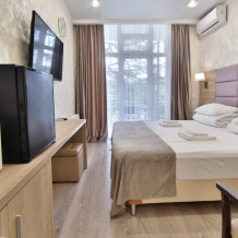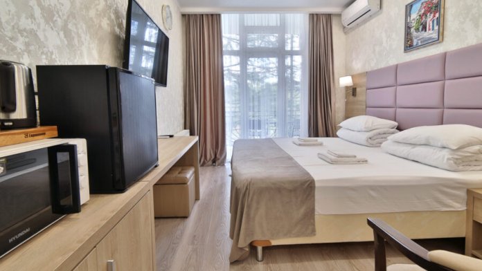 Двухместный стандартный номер в новом жилом комплексе бизнес класса «Покровский Парк» в самом низу микрорайона Светлана, вблизи с парком Дендрарий, Сочинским цирком и центральной набережной. Парковки гостевой на территории нет. Но рядом с нами есть платная парковка и множество различных кафе, столовых, ресторанов, а также супермаркеты с кулинарией. Также в корпусе 10Д есть кофейня с завтраками на 1 этаже.