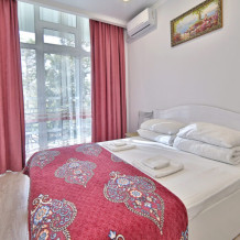 Улучшенный стандарт с кухней и видом во двор в новом жилом комплексе бизнес класса «Покровский Парк» в самом низу микрорайона Светлана, вблизи с парком Дендрарий, Сочинским цирком и центральной набережной. Парковки гостевой на территории нет. Но рядом с нами есть платная парковка и множество различных кафе, столовых, ресторанов, а также супермаркеты с кулинарией. Также в корпусе 10Д есть кофейня с завтраками на 1 этаже.