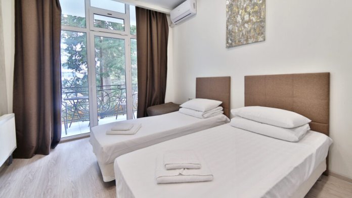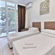 Улучшенный стандарт c 2 раздельными кроватями в новом жилом комплексе бизнес класса «Покровский Парк» в самом низу микрорайона Светлана, вблизи с парком Дендрарий, Сочинским цирком и центральной набережной. Парковки гостевой на территории нет. Но рядом с нами есть платная парковка и множество различных кафе, столовых, ресторанов, а также супермаркеты с кулинарией. Также в корпусе 10Д есть кофейня с завтраками на 1 этаже.