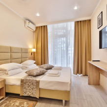 Двухместный Стандартный номер в новом жилом комплексе бизнес класса «Покровский Парк» в самом низу микрорайона Светлана, вблизи с парком Дендрарий, Сочинским цирком и центральной набережной. Парковки гостевой на территории нет. Но рядом с нами есть платная парковка и множество различных кафе, столовых, ресторанов, а также супермаркеты с кулинарией. Также в корпусе 10Д есть кофейня с завтраками на 1 этаже.