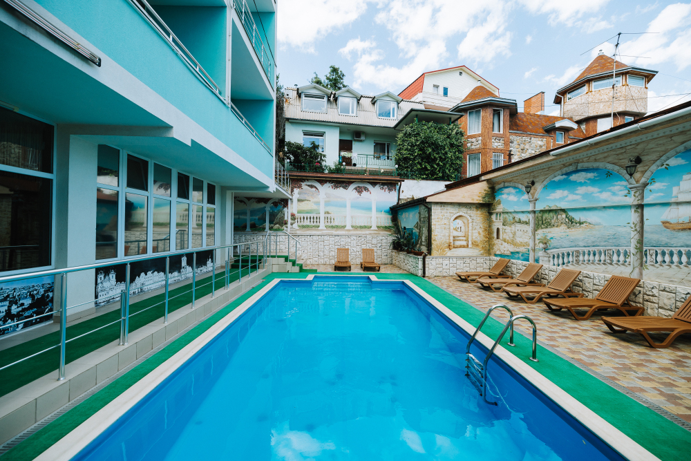 В бесплатное пользование нашим гостям предоставлено: на территории отеля бассейн, шезлонги, детская площадка.