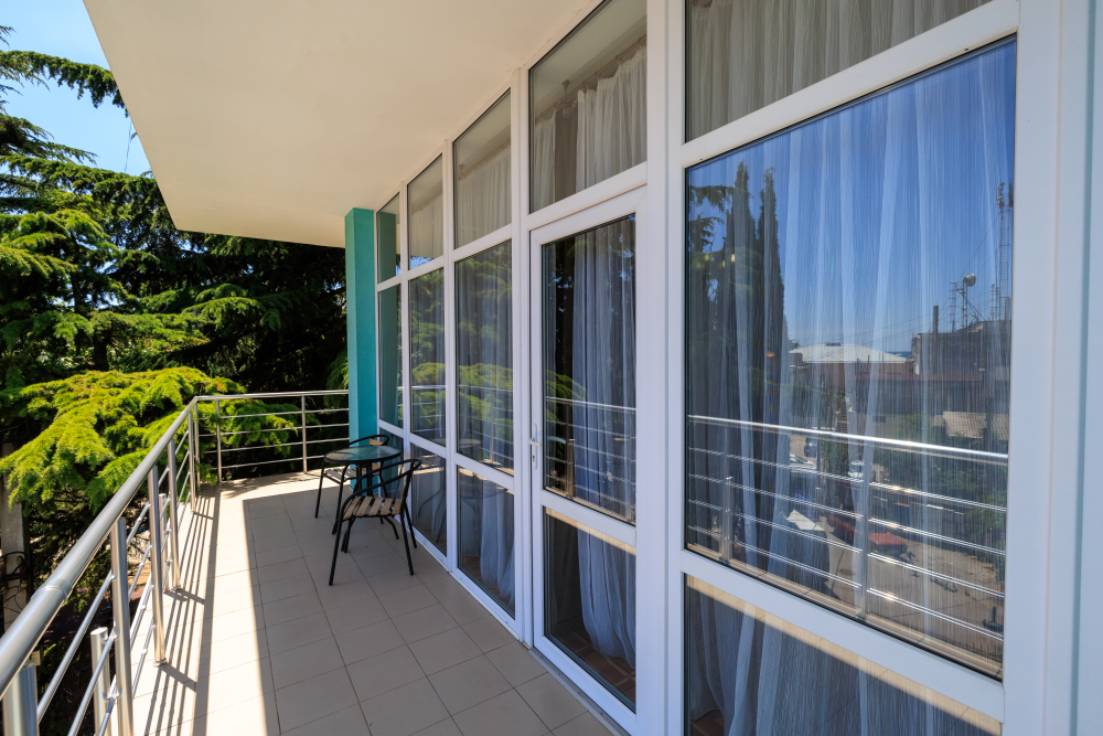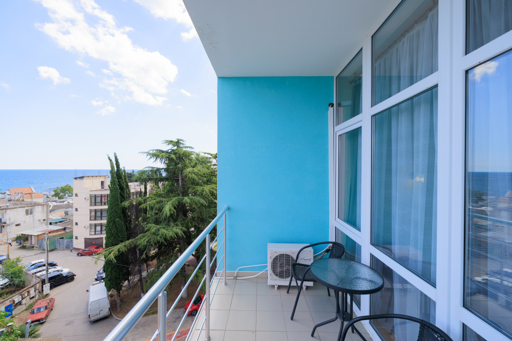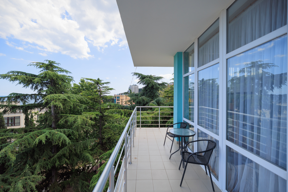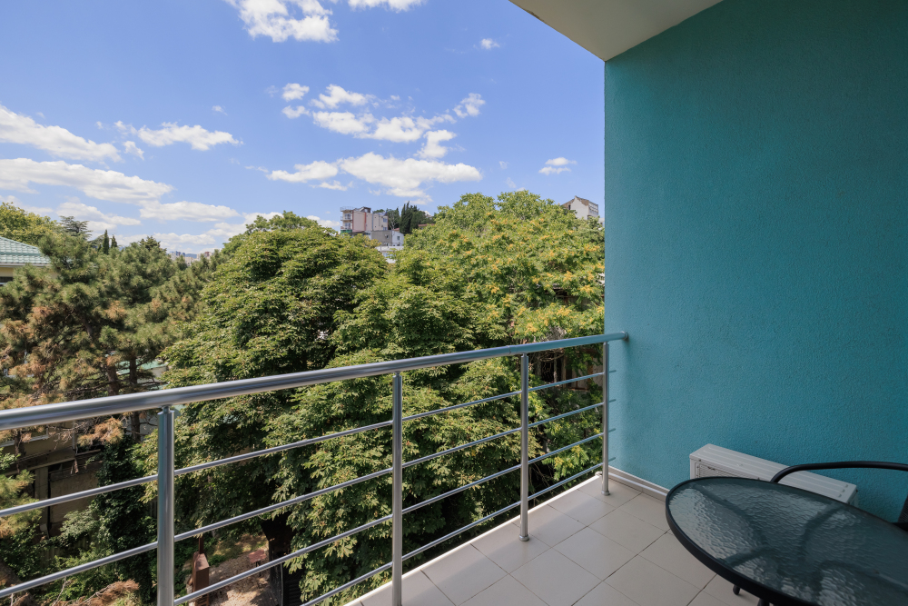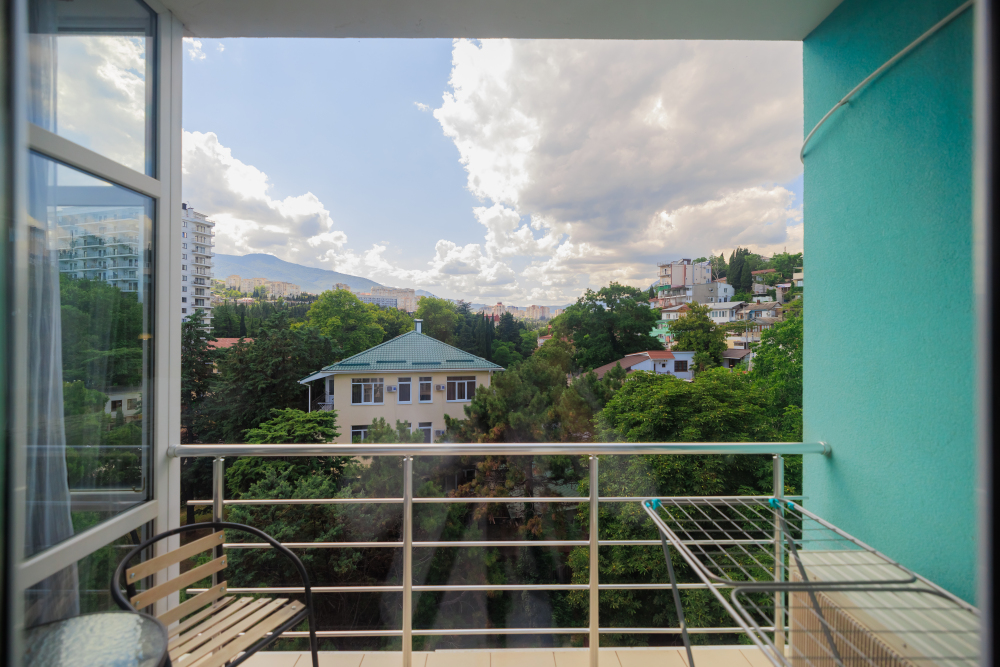 Гостиница расположена в парковой зоне, вид из номеров на парк, море, горы.