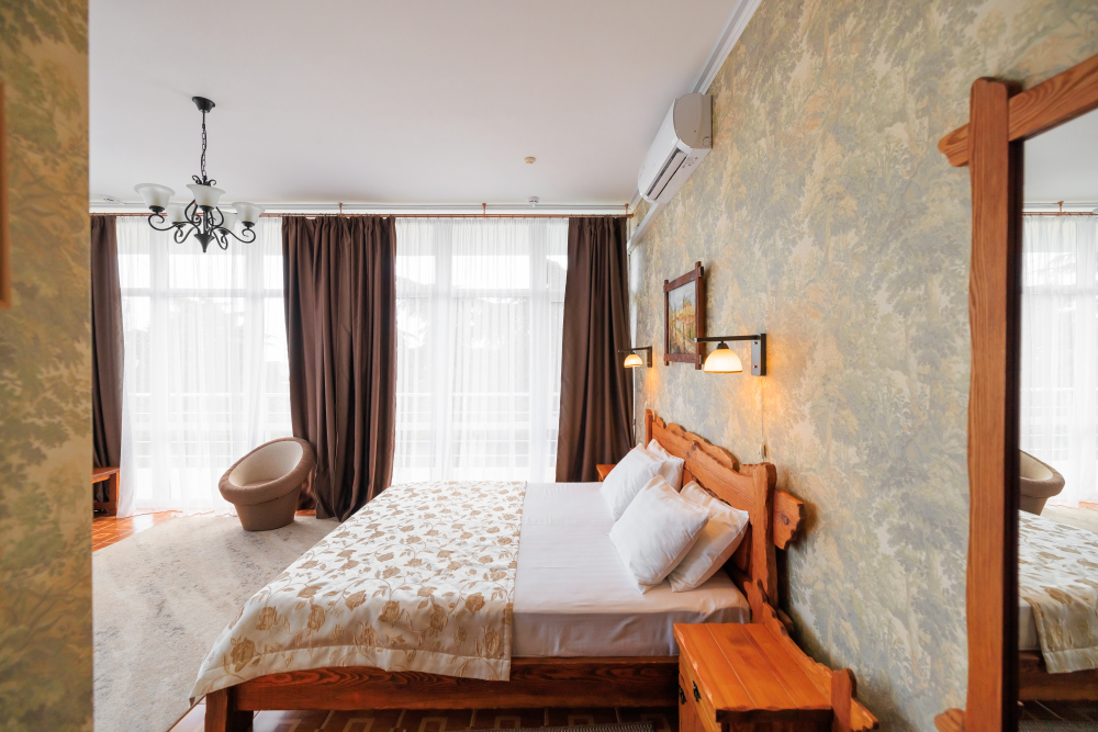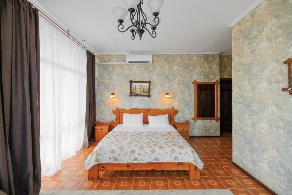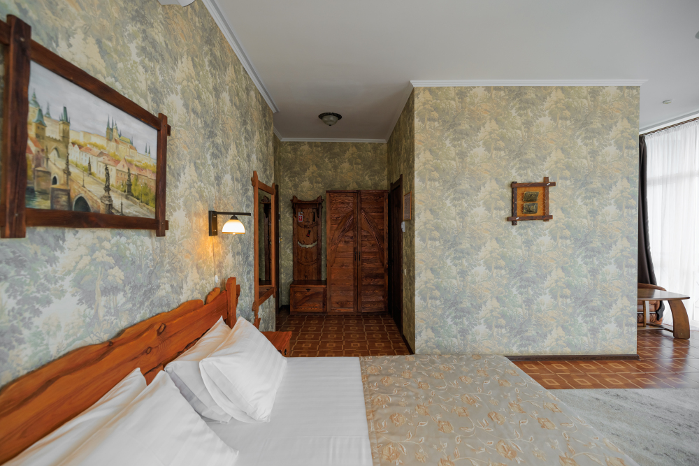 Номера оборудованы современной мебелью из натурального дерева в стиле чешских традиций.