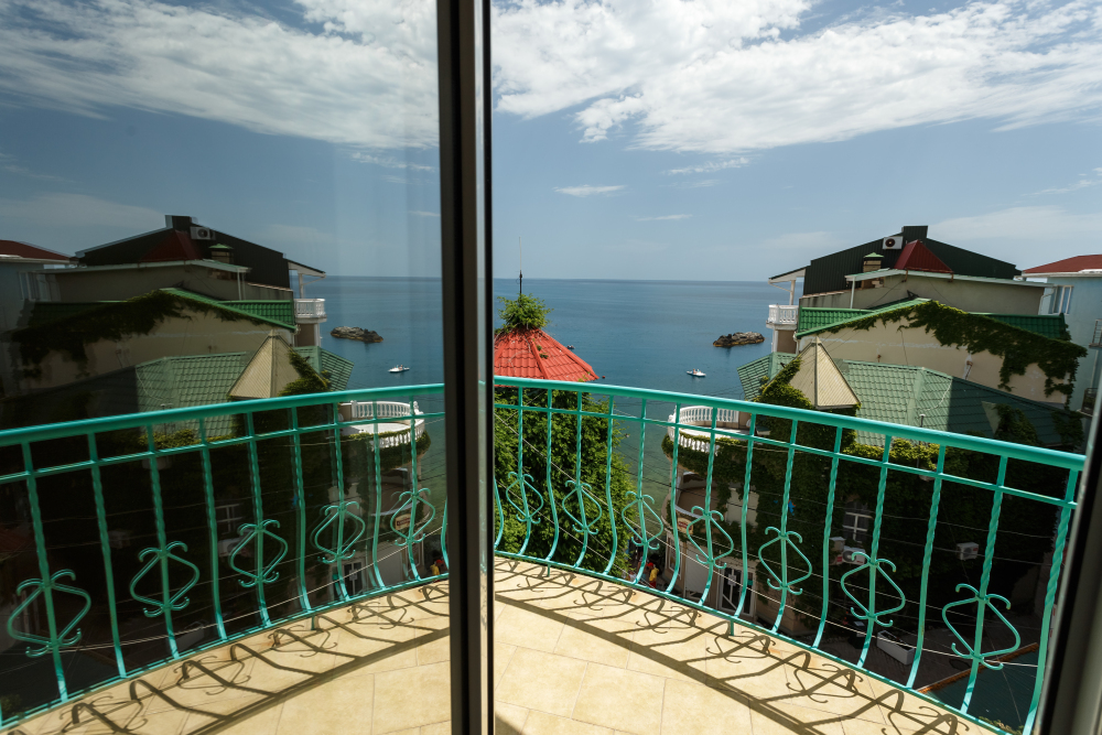 Гости могут забронировать номера категории Люкс. Из каждого номера неповторимо открывается панорамный вид на море. Во всех номерах есть кондиционер, чайник, холодильник, фен, тапочки, комплекты банных полотенец.