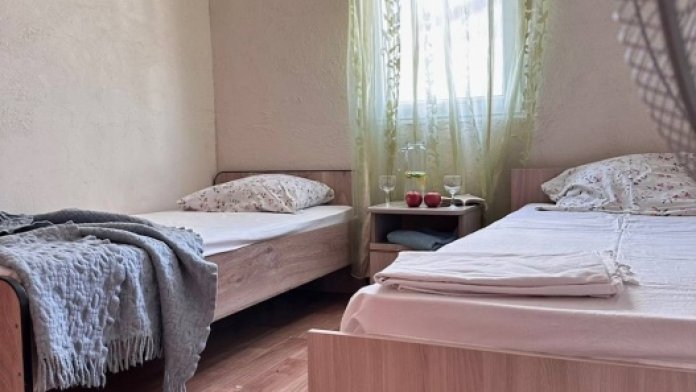 Номер подходит для проживания одного или двух человек (есть возможность поставить добавочное спальное место, это нужно уточнять лично). Санузел общий на территории.