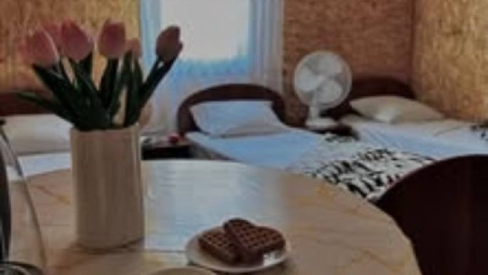 В номере две удобные односпальные кровати,холодильник, вентилятор, телевизор , вешало для одежды, зеркало, тумбы прикроватные, чайник.