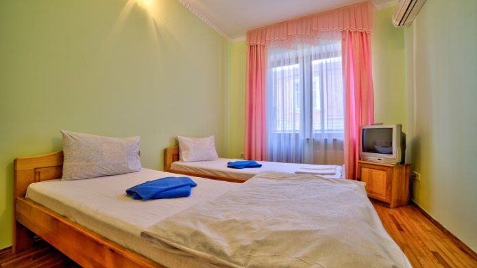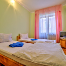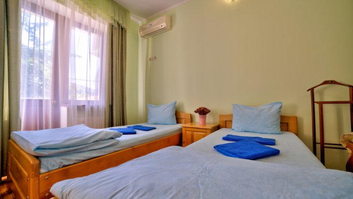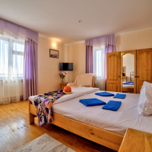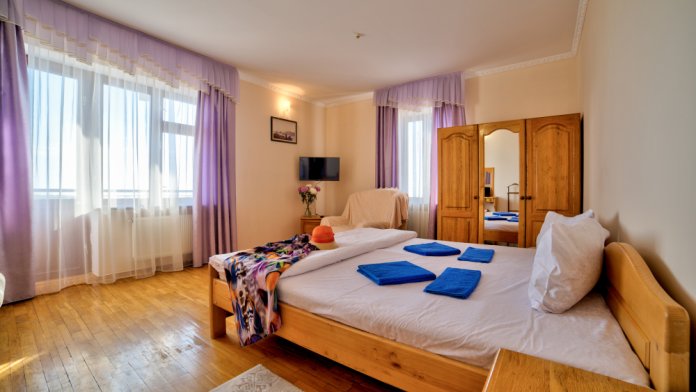 Главный корпус отеля «Крым» - добротное пятиэтажное здание. Все 20 номеров отеля «Крым» оснащены балконами с красивейшим видом на Крымские горы, старый город и море.