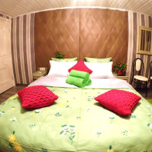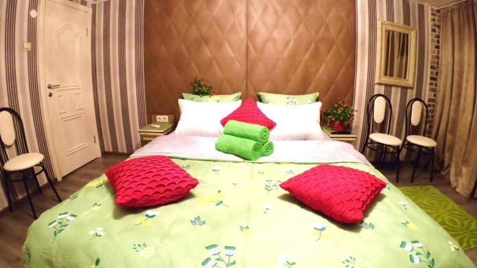 Хороший ремонт, теплая домашняя атмосфера. Мебель современная. Из бытовой техники: холодильник, стиральная машина, электрический чайник, утюг, гладильная доска, телевизоры. Свежее, ароматное хлопковое постельные белье, полотенца, средства гигиены, необходимая посуда. Охрана на ресепшн и видеонаблюдение в холлах.