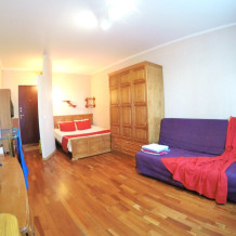 Квартира недорогая, простая с косметическим ремонтом. 4 спальных места (кровать + диван). Посуды много, все моющие средства и постельное белье полотенца в наличии. В доме консьерж.