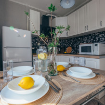 Мы предоставим Вам всё самое необходимое для комфортного проживания и отдыха - чистое качественное постельное белье и полотенца, тапочки и принадлежности для душа. В квартире 2 спальных места для 4 гостей: большая двуспальная кровать и раскладной двухместный диван. ТВ с диагональю 32’’, комод, прихожая. Кухонное оборудование: электроплита, микроволновая печь, чайник, полный набор посуды и кухонных принадлежностей. Квартира укомплектована стиральной машиной, гладильными принадлежностями, имеется бесплатный высокоскоростной интернет Wi-Fi.