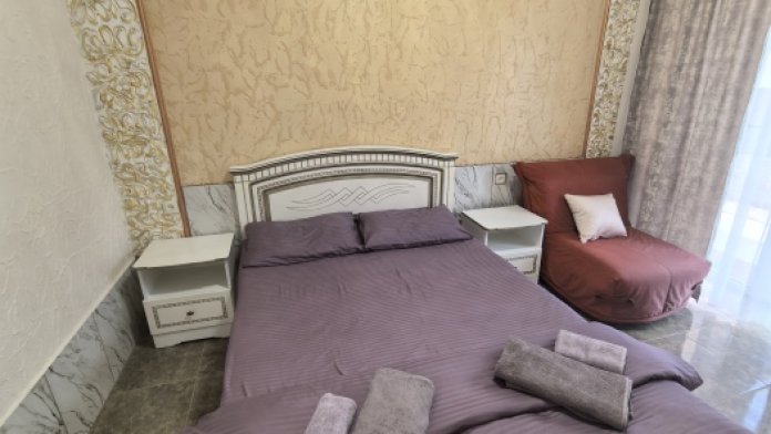 Двухместный эконом. В номере двуспальная кровать, телевизор, кондиционер, тумбочка, полки для хранения. Перед номеров под инжиром находится стол со стульями. Душ и туалет один на два номера. На территории гостевого дома находится общая кухня, бассейн, мангальная зона. В радиусе 50 метров находятся магнит, пятерочка, магнит косметик, аптека, красно белое, ермолино, мясной магазин, мини рынок, столовые, кафе и многое другое. Также мы организовываем экскурсии. До центрального Сочи на Ласточке 25 минут. До остановки электрички от гостевого дома 5 минут пешком.