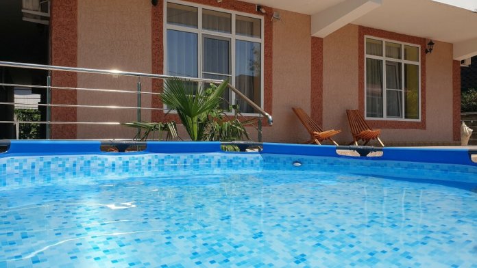 На территории коттеджа расположен бассейн с шезлонгами, где можно насладиться солнцем и прохладой воды в жаркие дни. Также здесь находится мангальная зона.