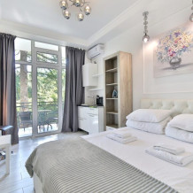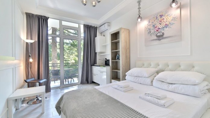 Двухместный стандартный номер в новом жилом комплексе бизнес класса «Покровский Парк» в самом низу микрорайона Светлана, вблизи с парком Дендрарий, Сочинским цирком и центральной набережной. Парковки гостевой на территории нет. Но рядом с нами есть платная парковка и множество различных кафе, столовых, ресторанов, а также супермаркеты с кулинарией. Также в корпусе 10Д есть кофейня с завтраками на 1 этаже.