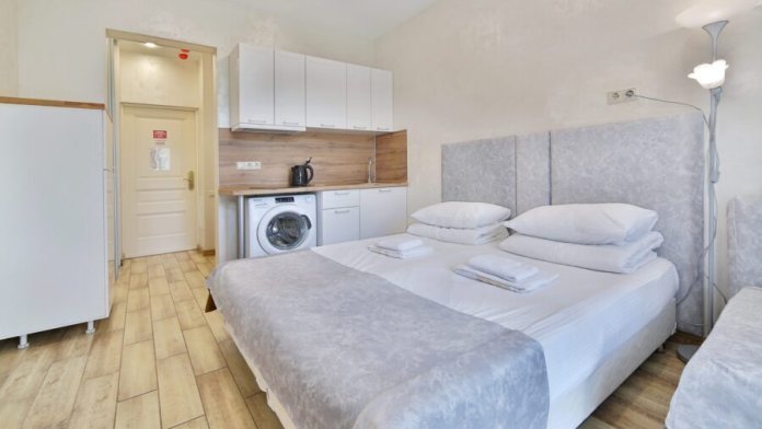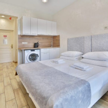 Улучшенная студия с доп. местом и кухней в новом жилом комплексе бизнес класса «Покровский Парк» в самом низу микрорайона Светлана, вблизи с парком Дендрарий, Сочинским цирком и центральной набережной. Парковки гостевой на территории нет. Но рядом с нами есть платная парковка и множество различных кафе, столовых, ресторанов, а также супермаркеты с кулинарией. Также в корпусе 10Д есть кофейня с завтраками на 1 этаже.