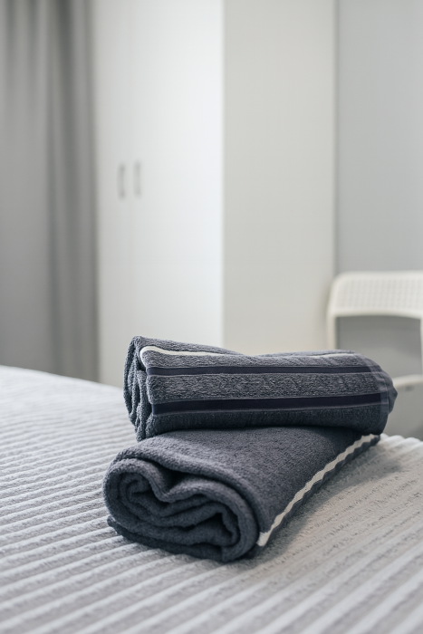• Постельное бельё и полотенца — 100% хлопок, после стирки и глажки в профессиональной прачечной