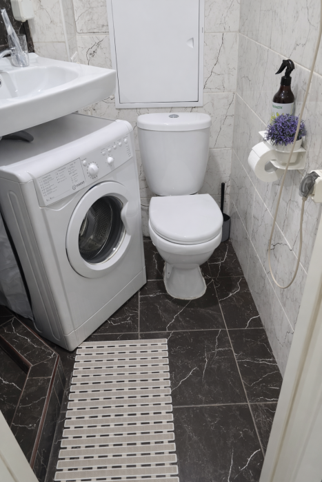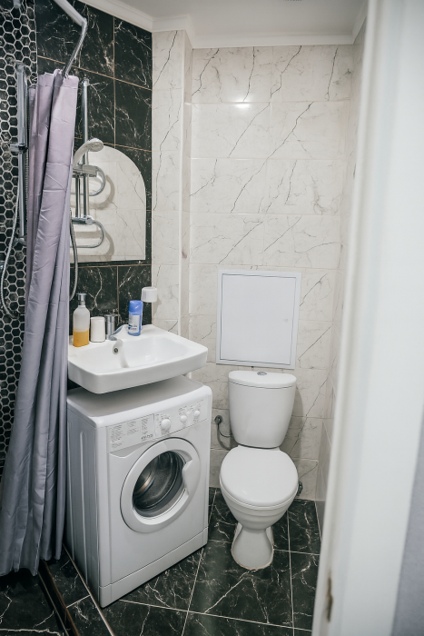 • Совмещенный санузел с душевой, стиральная машина, средства гигиены
