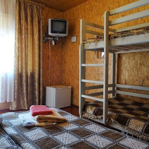 Номер с отдельным входом для проживания семьи с одним или двумя детьми; индивидуальные тумбочки прикроватные,шкаф двустворчатый с вешалками для вещей;зеркало.Санузел: душевая комната,туалет - общие на 3-4 номера.
