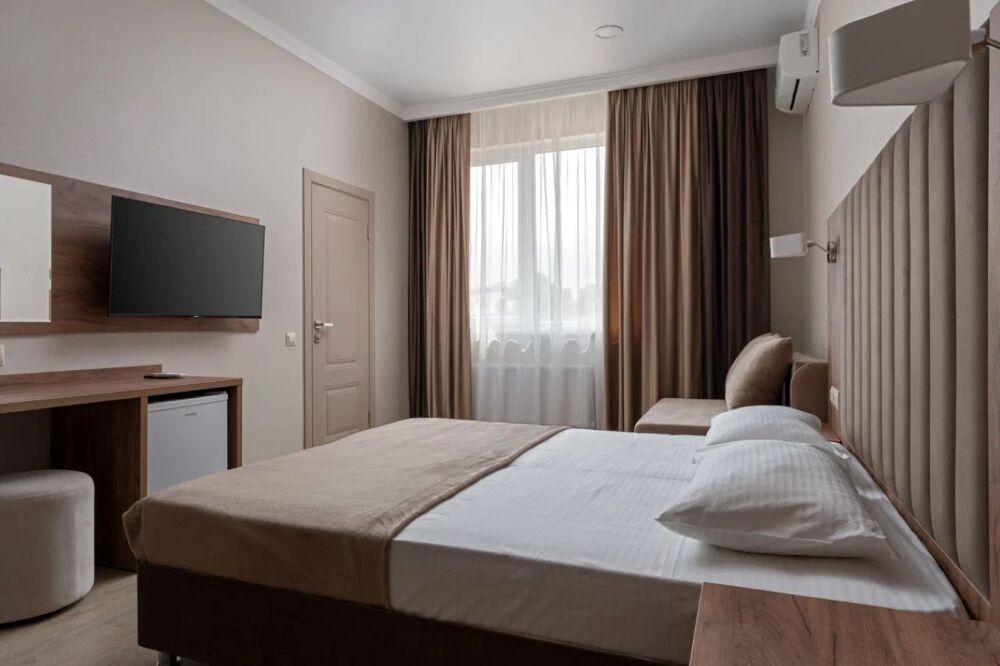 Гостиница состоит из одного трехэтажного корпуса. Гости могут забронировать номера категорий Комфорт и Семейный. В каждом из них есть все необходимое для комфортного проживания: двуспальная кровать с ортопедическим матрасом и мягким изголовьем, прикроватные тумбочки, шкаф, сейф, внутренний телефон, телевизор Smart TV, холодильник, электрический чайник, сплит система, интернет, оборудованное рабочее место, высокосортной бесплатный Wi-Fi. В ванной комнате: классический душ, санузел, умывальник, фен, комплект полотенец. Имеются все банные и гигиенические принадлежности: шампунь и кондиционер для волос, гель для душа, одноразовое мыло. На каждом этаже есть утюг и гладильная доска. В некоторых номерах есть балкон.