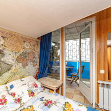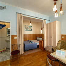 - Спальные места: 1 двуспальная кровать, 1 1-спальная кровать