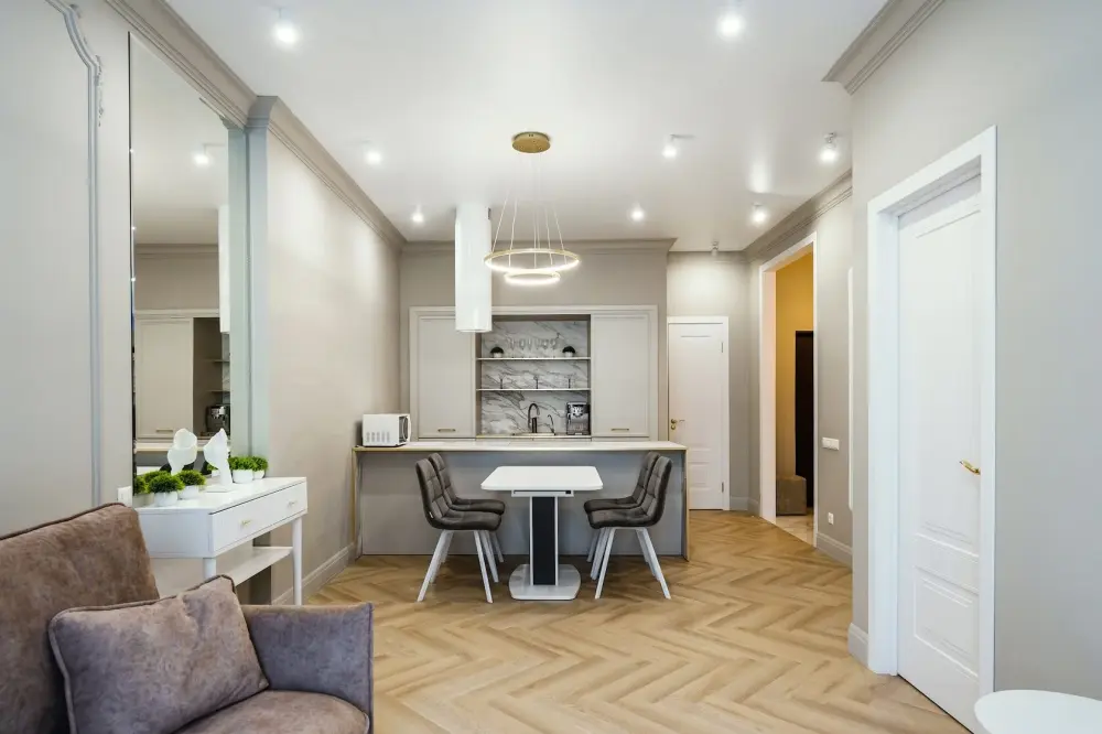 Апартaменты с дизaйнeрским ремoнтoм, гaрмoнично cочетают стиль и функциональность.