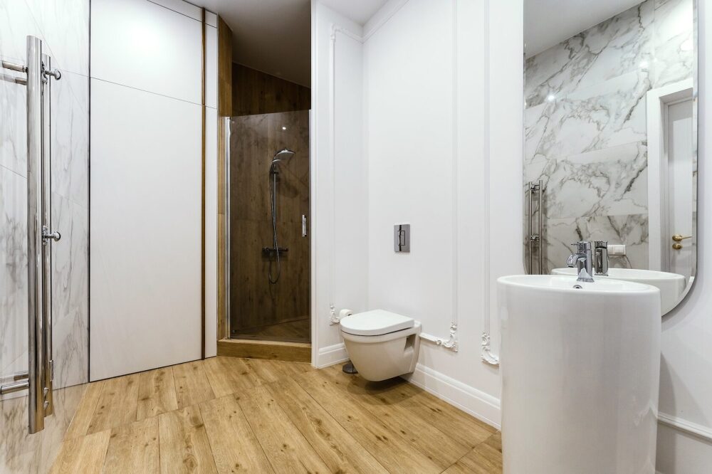 - Стиральная машина спрятана в специальном встроенном шкафу;