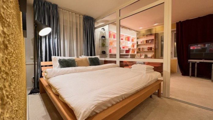 Квартира рассчитана на 4 человека, оборудована комфортной двуспальной кроватью (180x200 см) с удобным матрацем, обеспечивающим качественный и здоровый сон, а также современным диваном (160x200 см). На каждую кровать и диван идет следующий комплект: 2 подушки, 2 наволочки, двуспальное одеяло, пододеяльник, простынь.