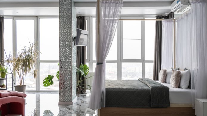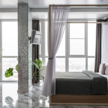 Квартира рассчитана на комфортное проживание 4 человек и оборудована двумя уютными спальными местами. Вас ждет двуспальный диван (160x200 см), обеспечивающий качественный и здоровый сон, а также большая кровать с балдахином и удобным матрасом (200x200 см). На каждую кровать и диван идет следующий комплект: 2 подушки, 2 наволочки, двуспальное одеяло, пододеяльник, простынь.