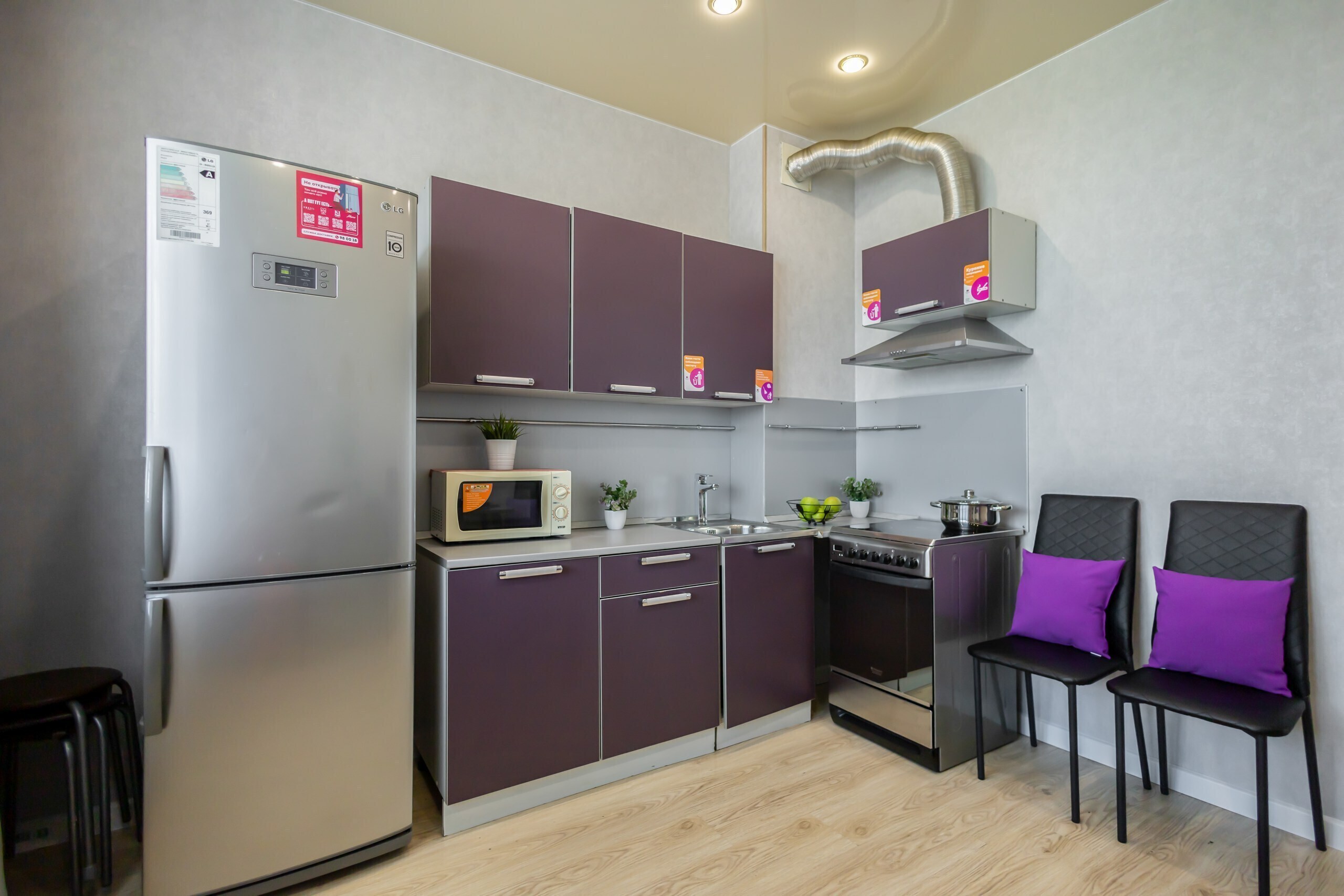 - холодильник, микроволновка, чайник, плита и полный набор посуды;