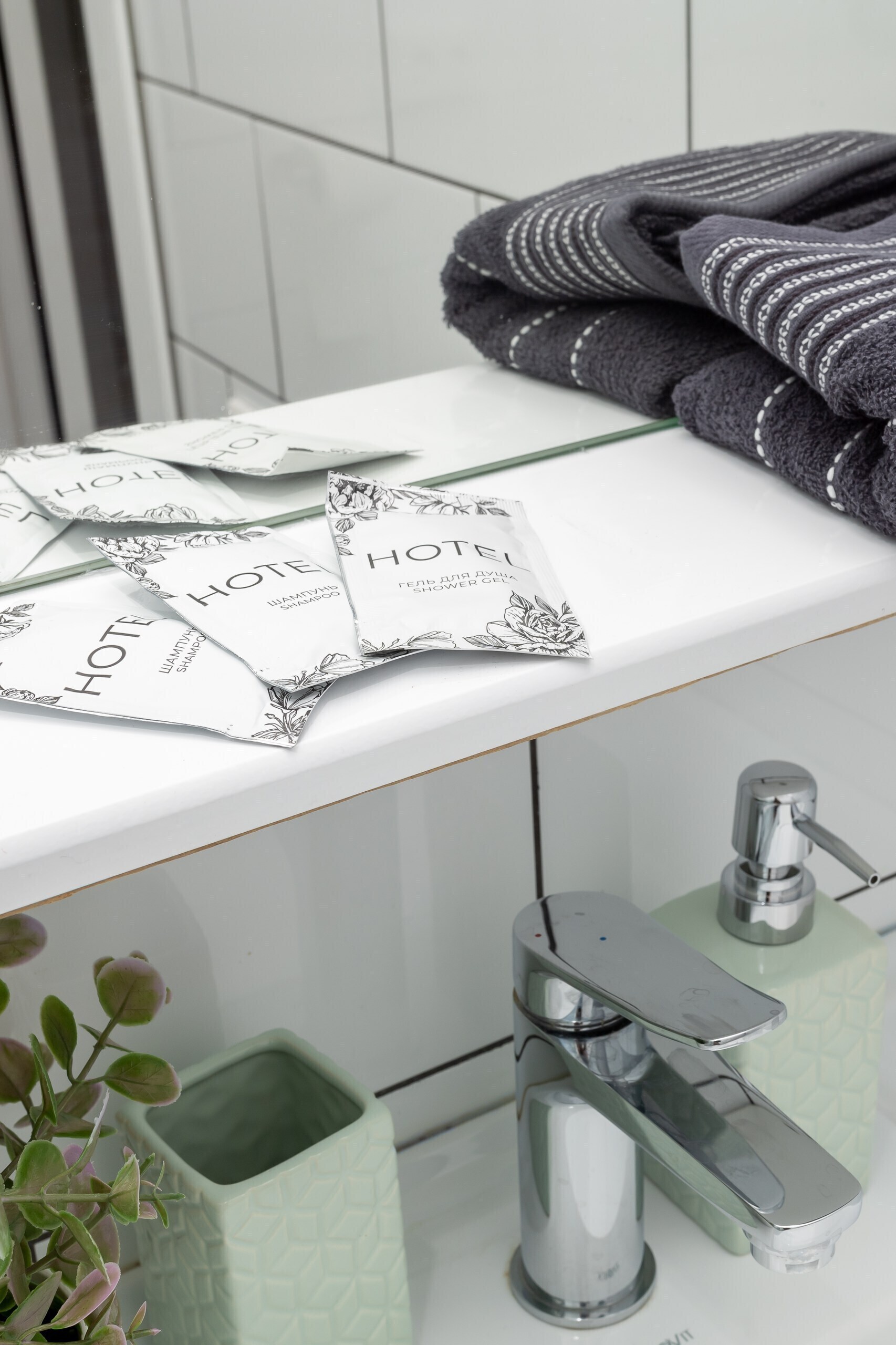 Просторные ванные комнаты с феном, свежими полотенцами и косметическими принадлежностями.