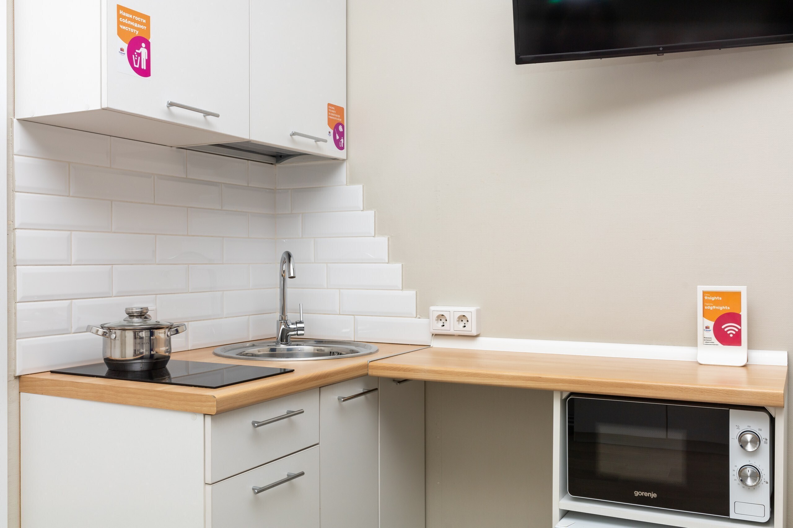 Нашим гостям полюбилась эта квартира благодаря своей простоте и комфорту. Ведь в ней есть всё необходимое для проживания 1–2 человек.